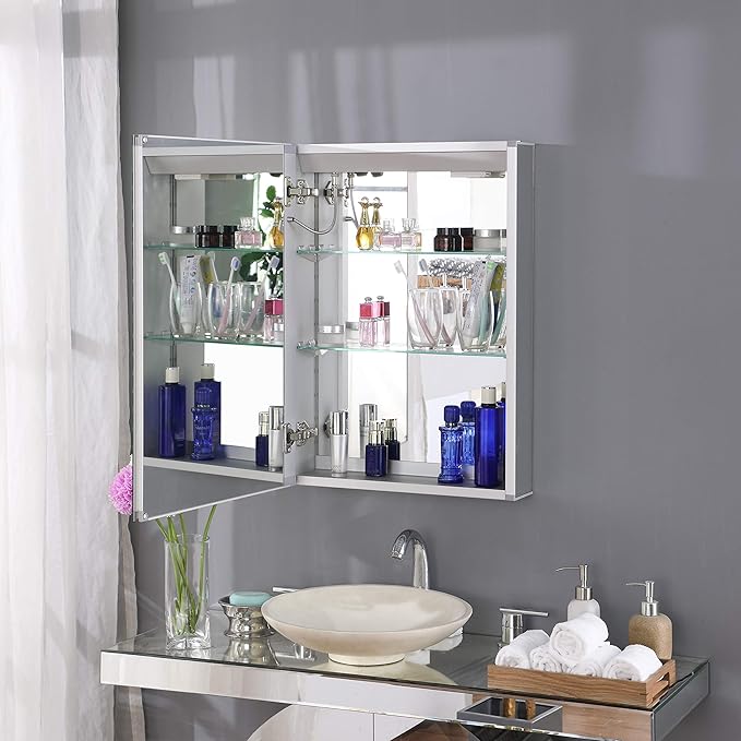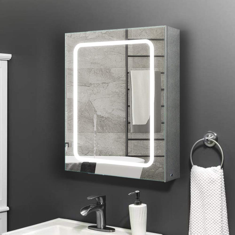 This Stylish and Practical LED illuminated mirror cabinet is designed to decorate your bathroom as well as helping you with make-up or shaving. Glacier Bay Delchester 236-inch W Vanity Bathroom Cabinet in White 50 249 And. Artis Double Door Bathroom Mirror Cabinet Cupboard Stainless Steel Wall Mounted 600mm.