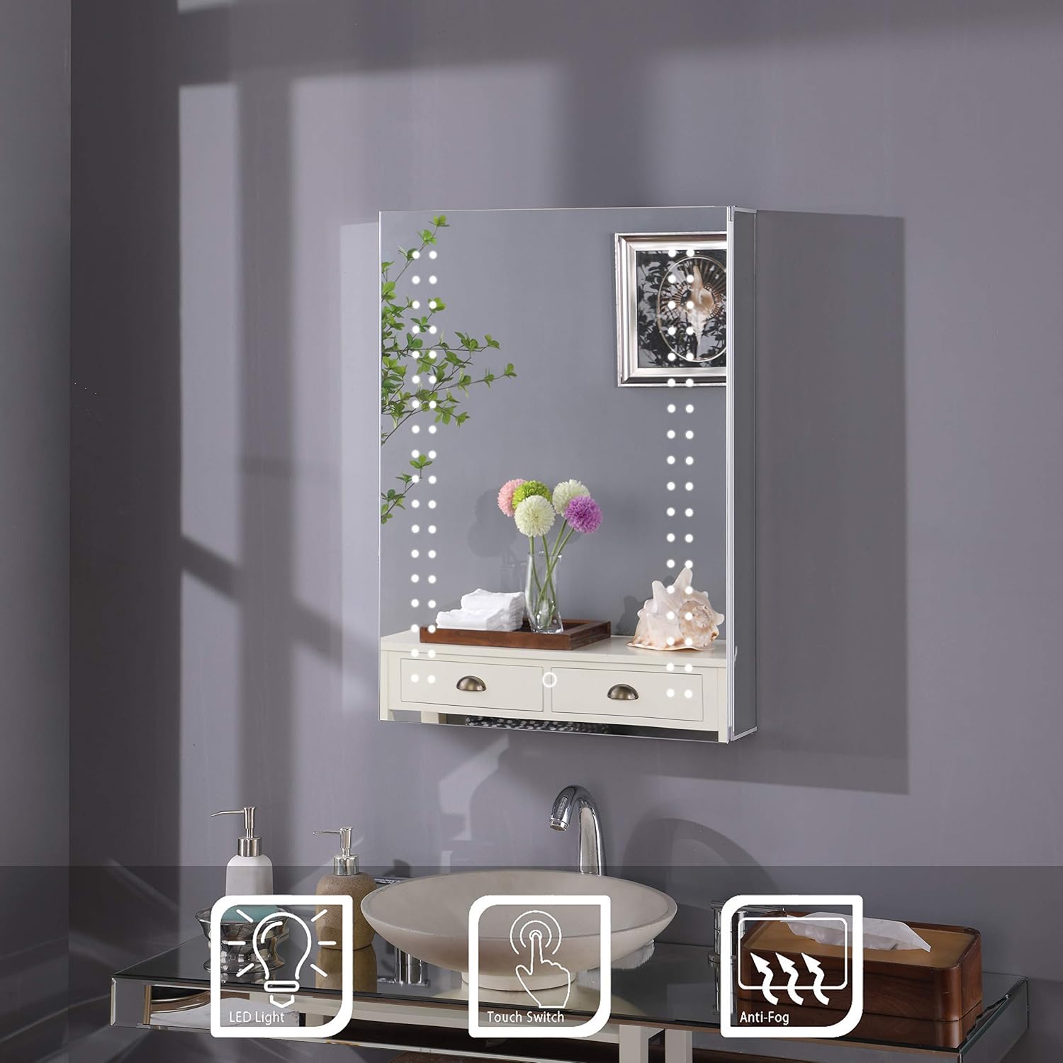 Salbay 500mm W X 700mm H Led Illuminated Bathroom Mirror Cabinet With Shaver Socket Demister Pad For Makeup Cosmetic Shaver Charging Aluminum Ip44 Type A Amazon Co Uk Kitchen Home